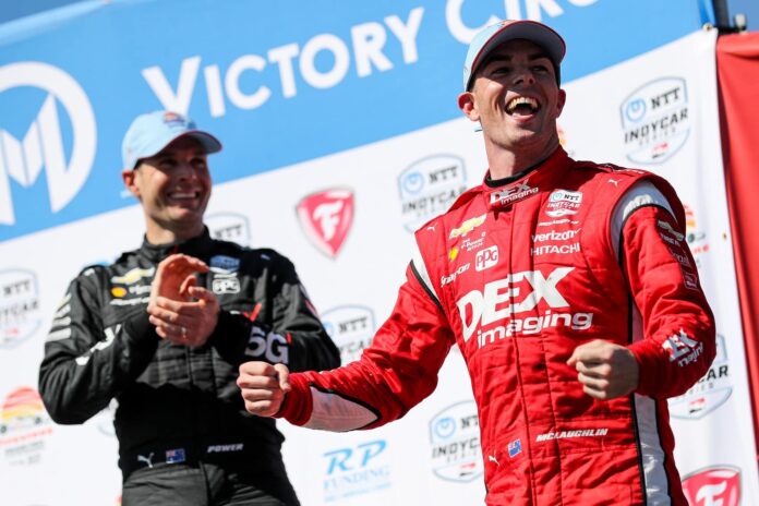 Végül McLaughlin rajt-cél győzelmet aratva szerezte meg a maximális pontszámot, ezzel éppen csak, de életben tartotta a matematikai esélyeit. Palou és O’Ward viszont kiszállt a bajnoki harcból.