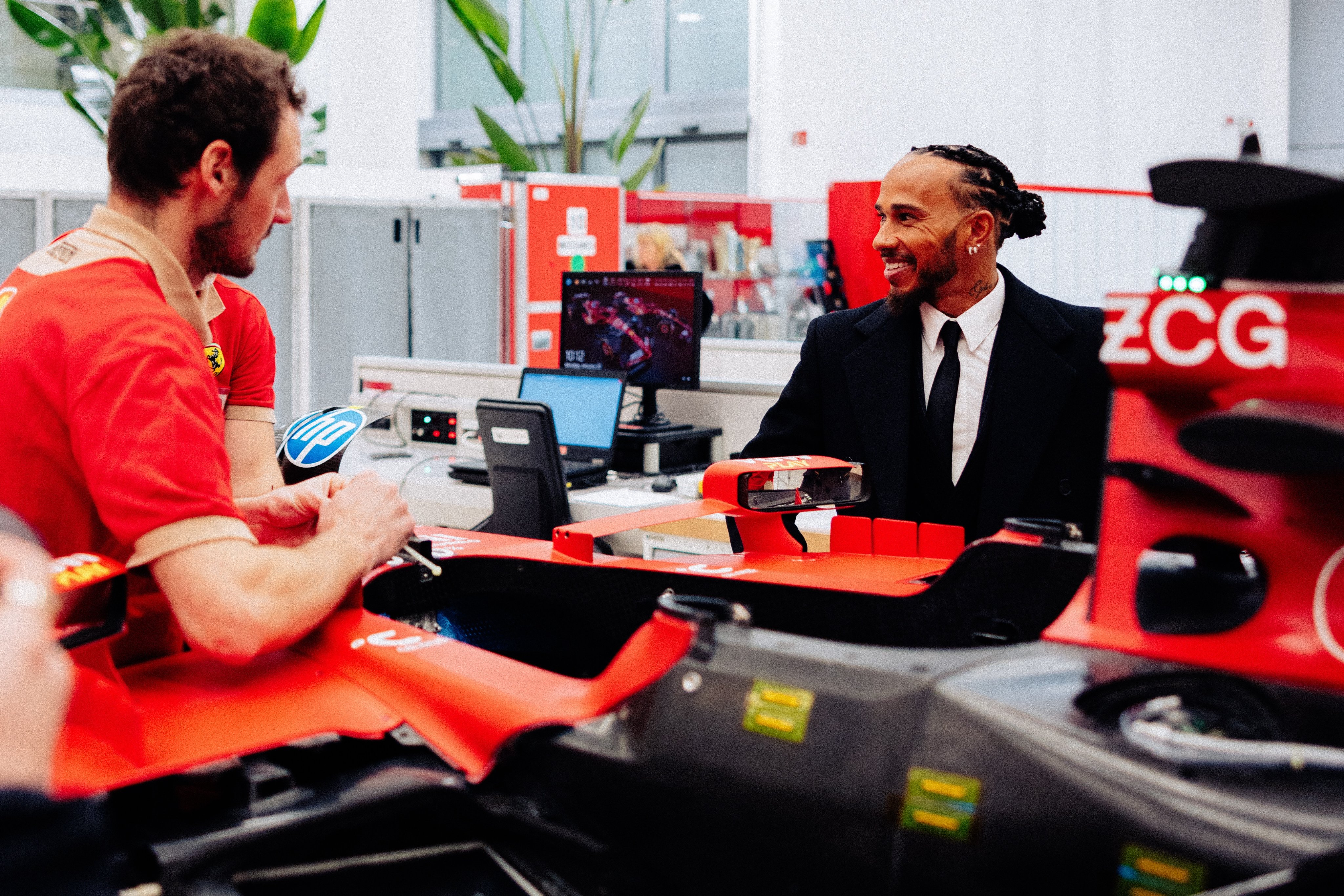 Azt pedig, hogy Hamilton milyen autóval érkezett, milyen ruhát viselt és mi volt a pontos programja, illetve erről hogyan és milyen felvételek készültek, szintén egy előre megtervezett, vele egyeztetett forgatókönyv határozta meg, amelyet nagy valószínűséggel a Ferrari alakított ki, miként szinten biztosan a Ferrari ötlete volt az is, hogy Hamilton kedvenc ágaskodó lovas sportautója, az F40-es legyen rajta az első Ferrari-pilótaként készült képen.