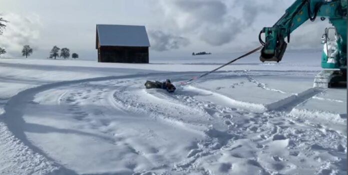 Nos, Hahnék kreatív módon használták ki a sok havat, némi mókázásra. Szomszédjukat és annak munkagépeit hívták segítségül egy kis „szánkózáshoz”.