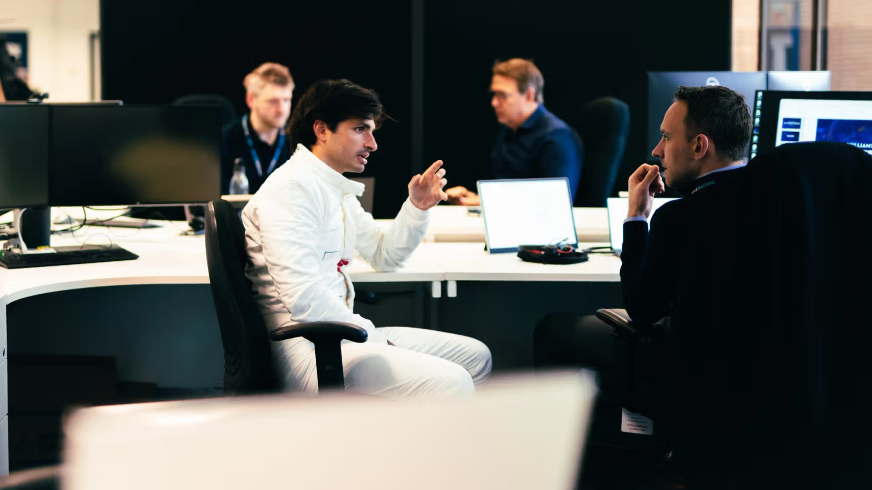 Sainz williamses belépőjének legkülönlegesebb szereplője azonban nem is maga Sainz. A videóban többször is látható, ahogy egy ismerős figura árnyékként követi, kamerázza a csapat új pilótáját: ő a szintén spanyol Roberto Merhi, aki maga is F1-es pilóta volt, ráadásul ugyanúgy 2015-ben debütált, ahogy Sainz. Egyetlen szezont töltött azonban csak el a sereghajtó Manorban, és az év végén már többször le is cserélték őt Alexander Rossira. A most 33 éves Merhi ezt követően sem alkotott maradandót az autósportok élvonalában, többször is visszatért még a Forma-2-be, 2023-ban a Formula-E-ben is megfordult, teljes szezonokat pedig a japán Super GT-ben húzott le az elmúlt három évben.