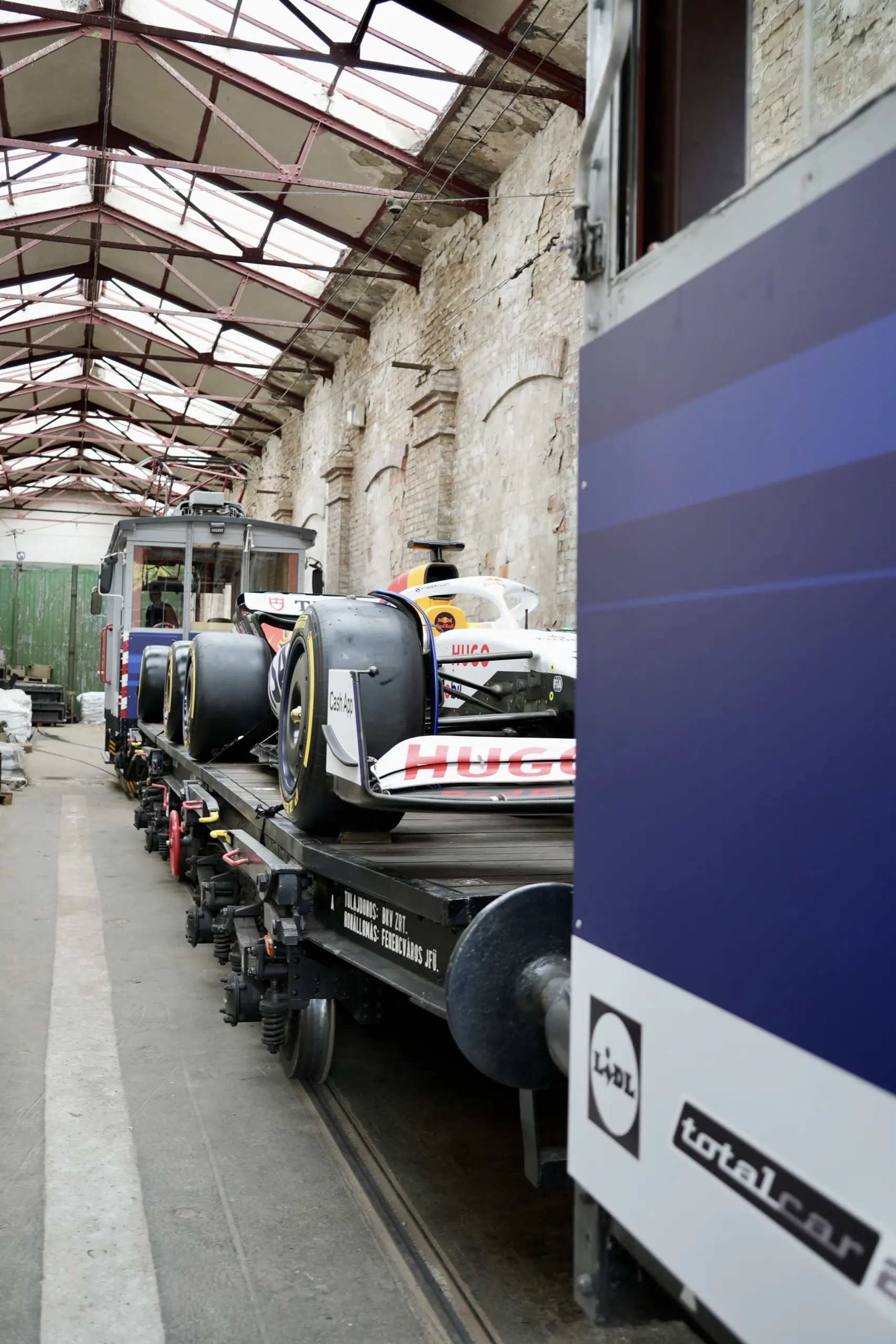A két F1-es kocsi (amelyek közül a Racing Bullsé egy 2023-as AlphaTauri átmatricázva, míg a Red Bull egy showcar, azaz nem valódi, hanem kifejezetten kiállítási darabnak gyártott, „belső” nélküli autó) Horváth Laura CrossFit-világbajnok és Nagy Dániel, az M4 Sport F1-es szakkommentátorának jelenlétében, csütörtökön hagyta el a Ferencváros kocsiszínt, hogy az elkövetkező napokban több vonalon is feltűnjön.