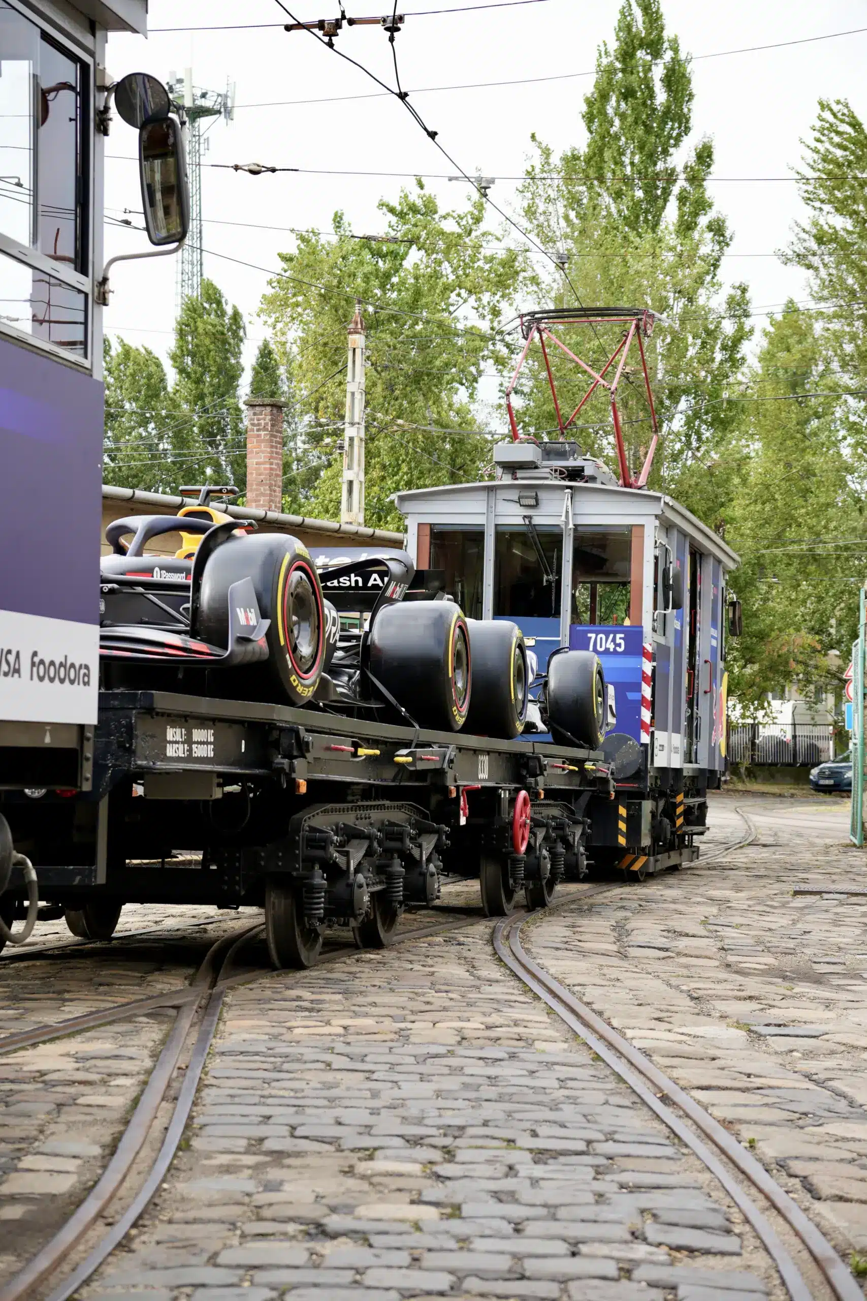A Ferencváros kocsiszínből útjára indult a Red Bull és a Racing Bulls F1-es autóját szállító villamos Budapesten, az elkövetkező napokban bárki megcsodálhatja.