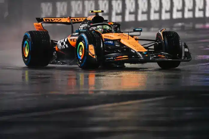 Végig vizes pályán zajlott a Las Vegas-i Nagydíj időmérő edzése, a nagy kihívást jelentő pályaviszonyok mellett pedig Lando Norris szerezte meg a pole-t, míg bajnoki riválisai közül Max Verstappen a 2., Oscar Piastri pedig az 5. lett.