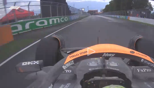 Az alábbi képen látható, Norris hol járt, amikor a LED-paneleken megjelent a versenyirányítás döntése a biztonsági autó bevezényléséről: valóban pillanatok alatt kellett volna mérlegelnie, mert pont jött a bokszutca előtti féktáv, és nem is biztos, hogy a versenyzőnek épp feltűnt a jelzés, a McLaren pedig csak akkor szólt a fülére a rádión, miután már átment az utolsó sikánon.