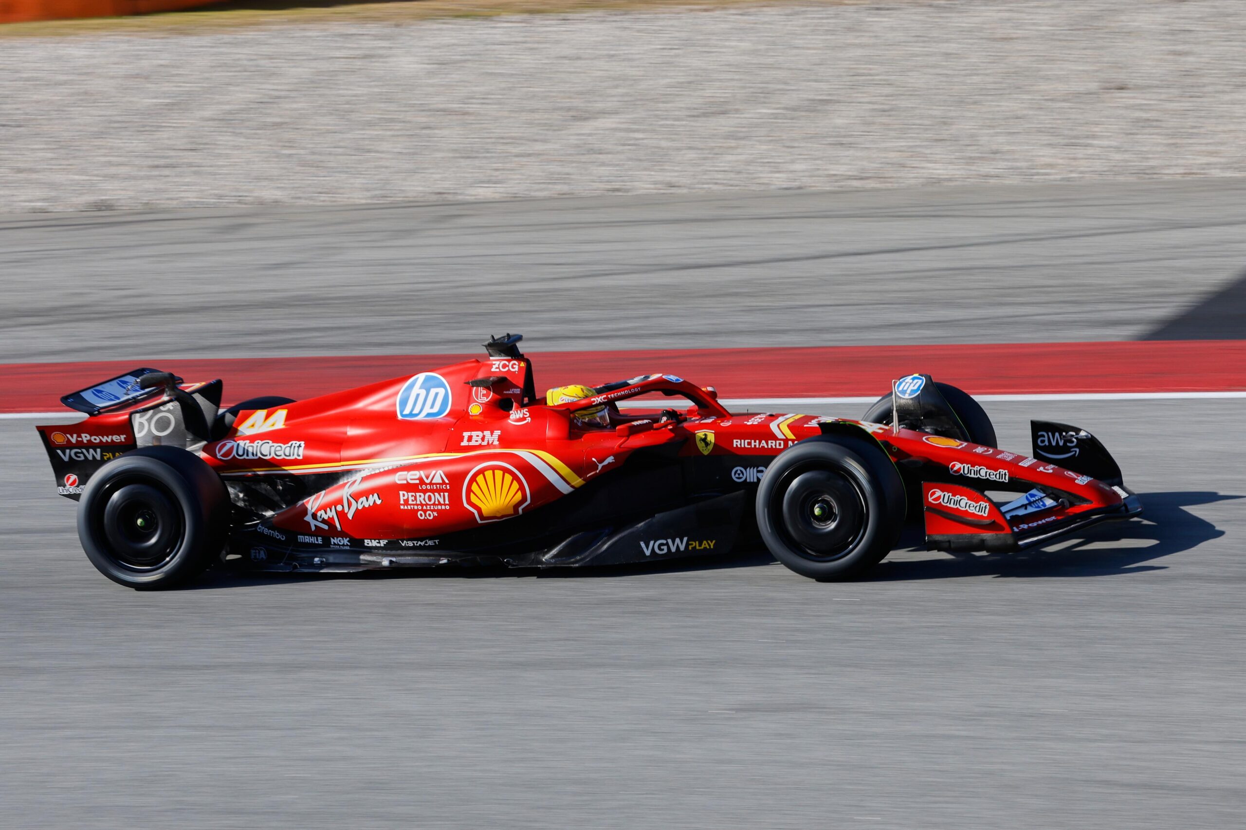 Három autó körözött a barcelonai pályán az e heti Pirelli-gumiteszt első napján, amely során Lewis Hamilton első alkalommal próbálhatta ki a Ferrari 2024-es autóját is – ami viszont nagyon más érzetet nyújtott, mint a tavalyi szezon során.