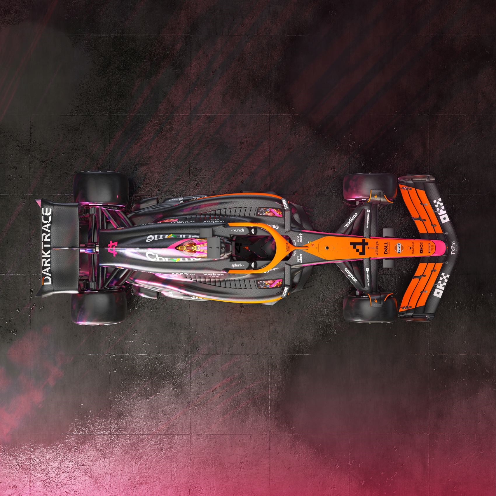 A hivatalos közlemény szerint a brit istálló Fluro Papaya színvilágát neonrózsaszínnel, és dinamikus cyberpunk elemekkel dobták fel. Az új dizájn a régi és az új technológiák keveredését szimbolizálja. Míg a szingapúri vonal mentén a előre tekint az új külső, addig a japán motívumok a tradíciókat elevenítik meg. Természetesen az új kinézet nemcsak az autóra vonatkozik, a wokingi csapat már piacra is dobta a különleges felsőket, amit a hivatalos boltjukból meg is vásárolhatnak a rajongók.