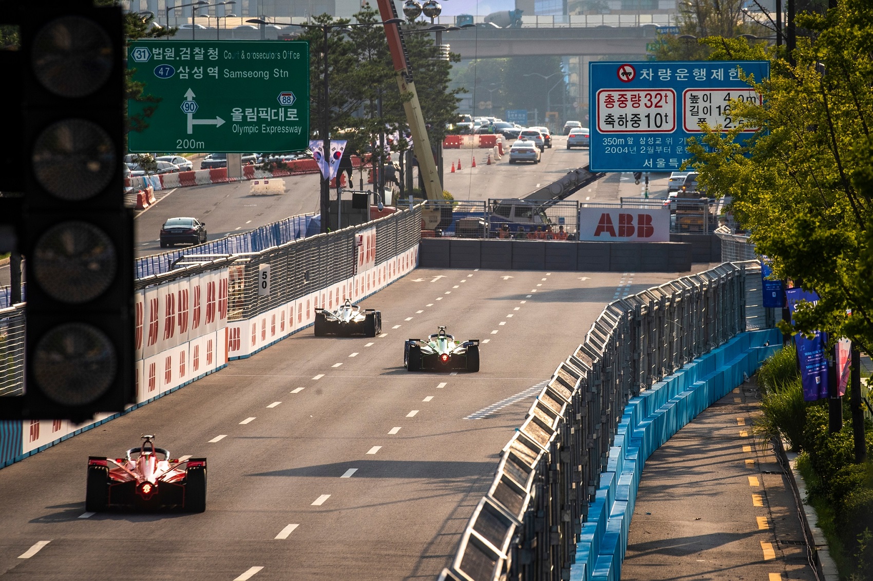 Felszáradó pályán di Grassi jött el elsőként a rajtrácsról, mögötte Evans rögtön előzött, és átvette tőle az első helyet. A brazil még egy helyet vesztett, amikor Rowland bebújt mellé a stadionban. Mortara az ötödik, Vandoorne a hetedik pozícióban haladt az első körben.