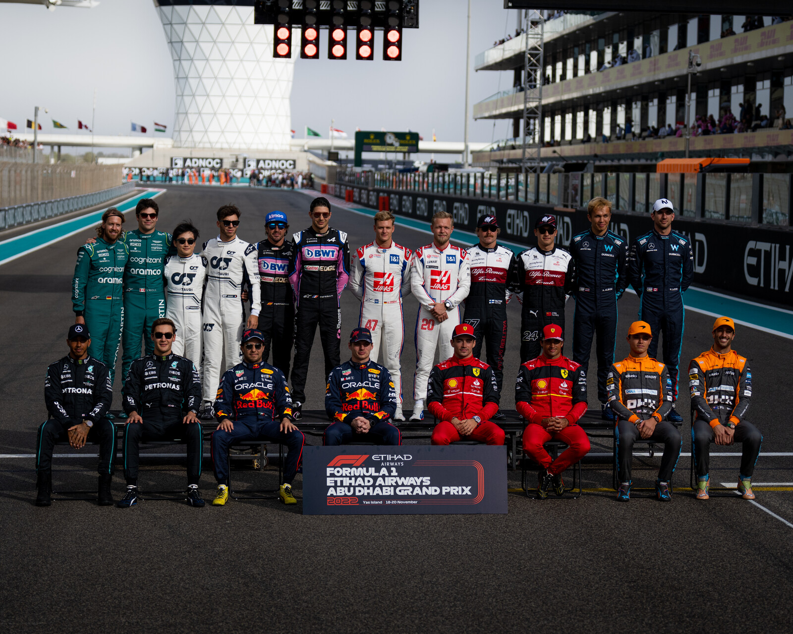 A 2022-es Forma-1-es szezon zárónapján készült fotókat mutatunk most, benne többek között csoportképpel, örömmel, és egy kis mókával, ugyanis George Russell „lenyúlta” Sebastian Vettel hajpántját. 😀