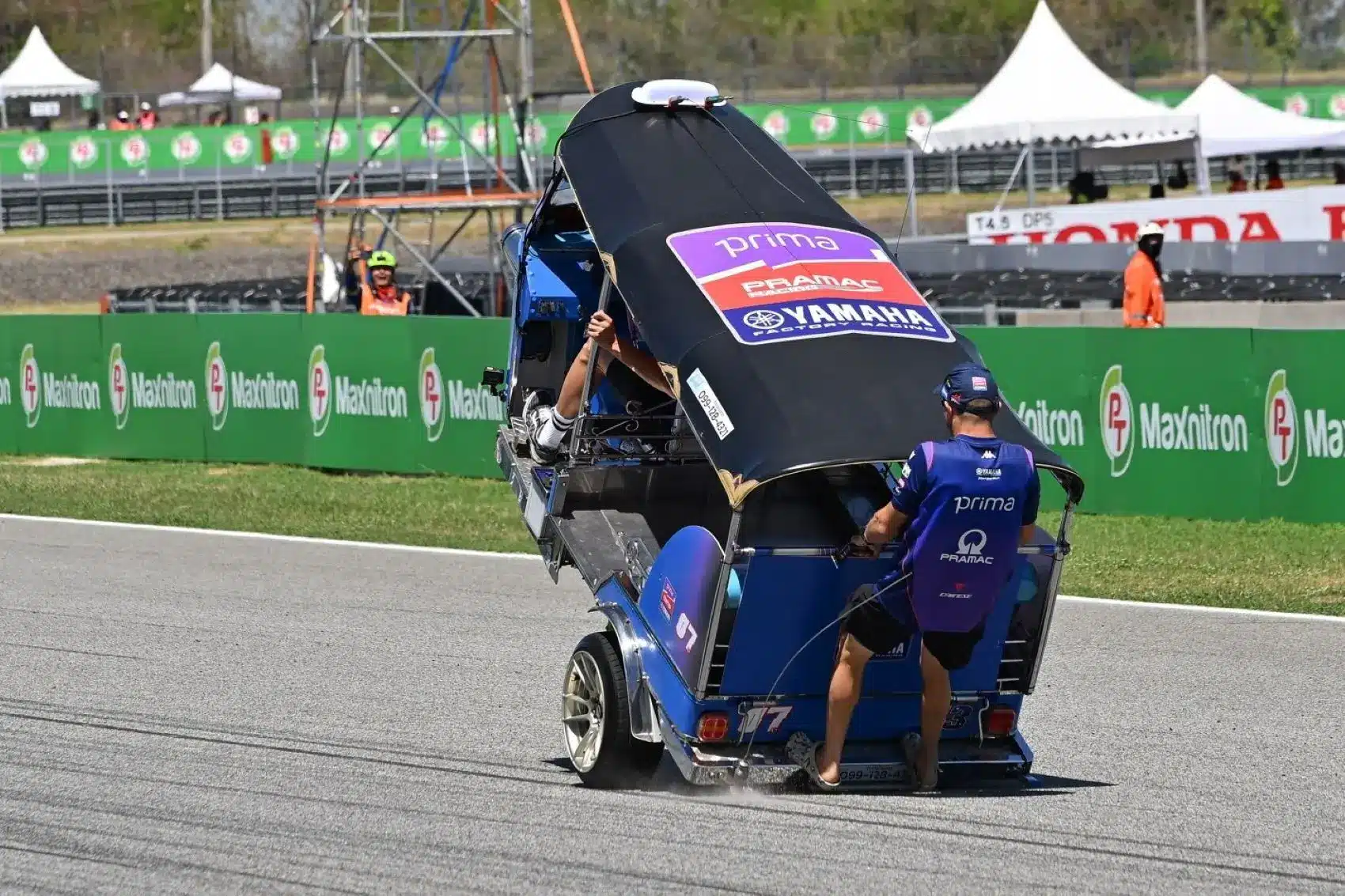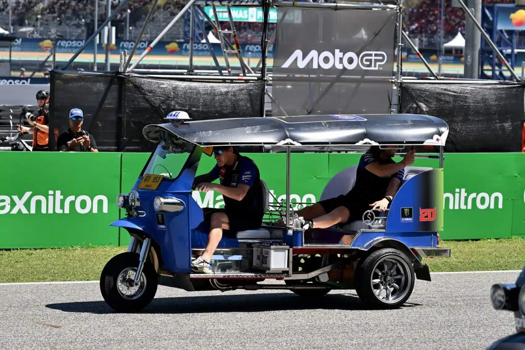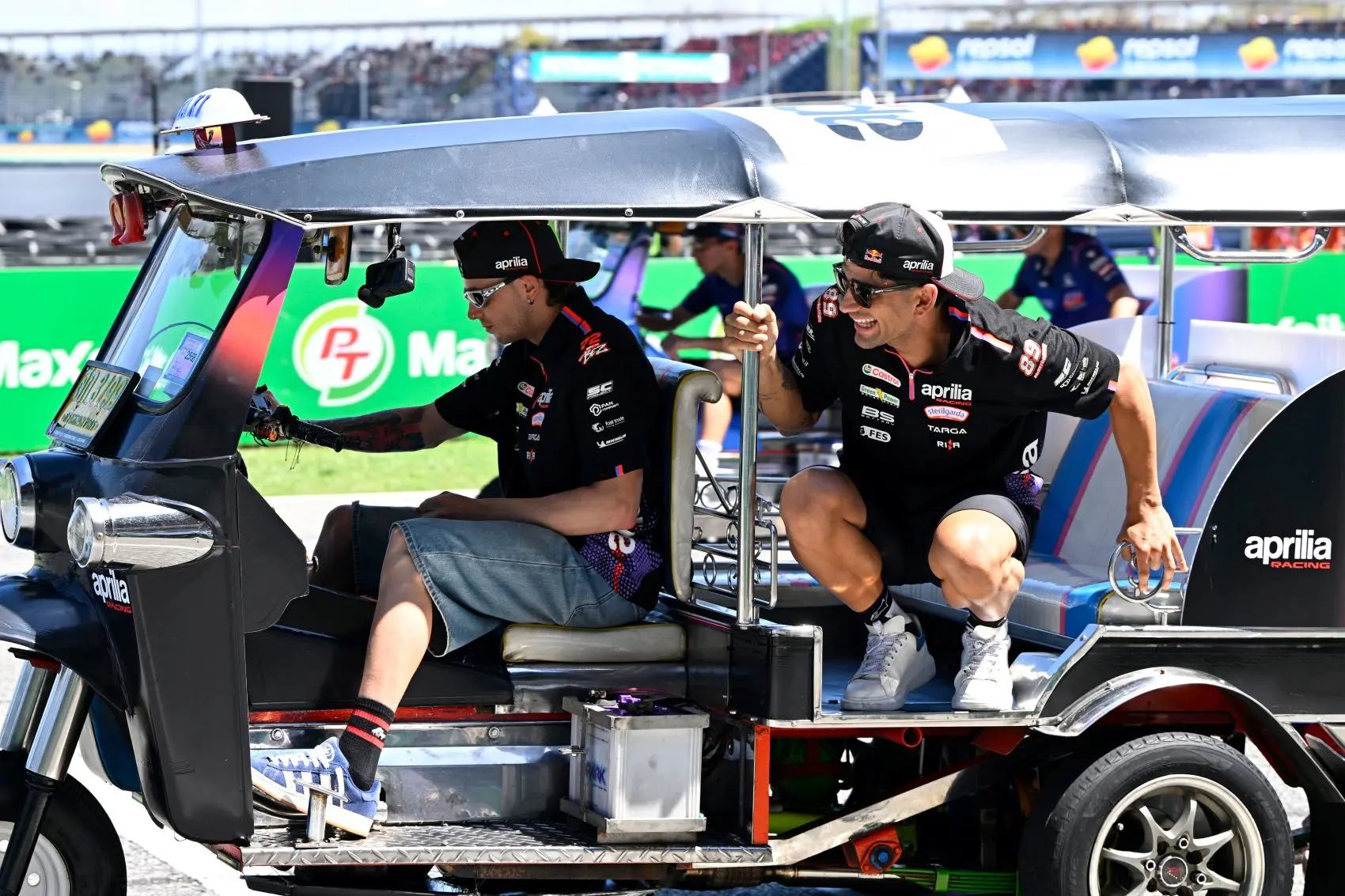 A pilóták egyre inkább kezdtek ellazulni ebben a szerepben, és inkább a mókás, már-már gyermeki énjüket vették elő. Enea Bastianini belülről örökítette meg az eseményeket, akit nem sokkal később Maverick Viñales szintén „egykerekezésre” bátorított, de ezt Brad Binder is megpróbálta. Marc Márquez itallal zavarta ellenfeleit, míg Jorge Martín úgy döntött, hogy kihajol a tuktukból.