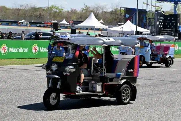 A MotoGP pilótaparádéja általában abból áll, hogy a pilótákat felterelik egy platóra, miközben egy lassú kört tesznek meg a pályán. Eközben pedig egy riporter kérdezi a versenyzőket. A Thai Nagydíjra azonban a szervezők csavartak egyet a szisztémán, és a főszereplők ezúttal tuktukokat vezethettek a Tuk-Tuk kihívás keretein belül.