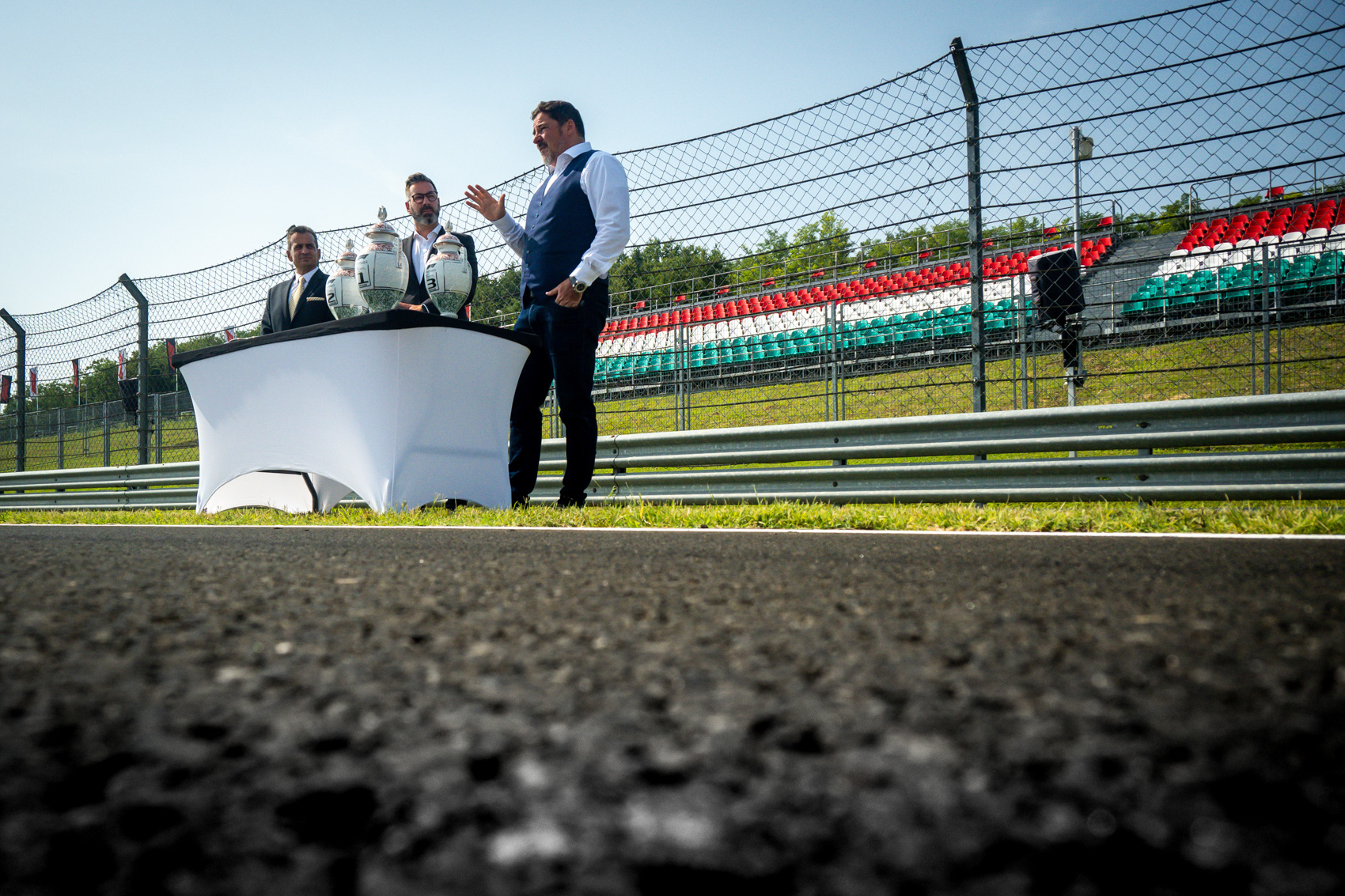 „Nem véletlen, hogy a magyarországi futam és a Herendi Porcelán rendkívül szorosan összekapcsolódnak egymással – válaszolta Simon kollégánk, Majer Dániel felvetésére. – Valóban így volt, annak idején Vettel kifogásolta, hogy az egyik futamon nem Herendi Porcelánt, hanem egy másfajta trófeát adtak, de ott is megoldottuk, és Vettel Herendi Porcelánnal tudott hazamenni.”