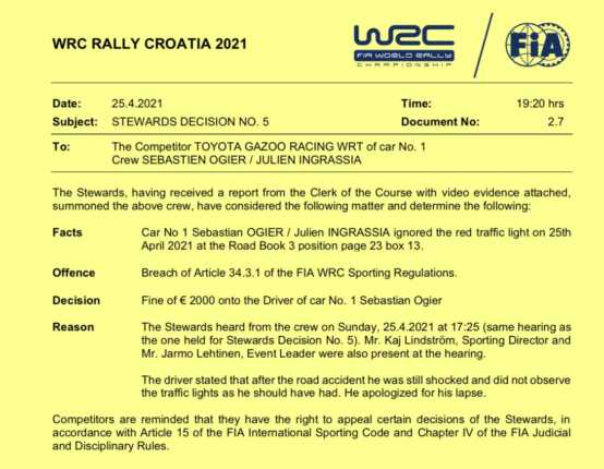 A világbajnokság állása: 1. Ogier 133 pont 2. Evans 99 pont 3. Thierry Neuville 77 pont 4. Tänak 69 pont 5. Katsuta 66 pont 6. Rovanperä 54 pont 7. Fourmaux 32 pont 8. Greensmith 32 pont 9. Sordo 31 pont 10. Craig Breen 24 pont